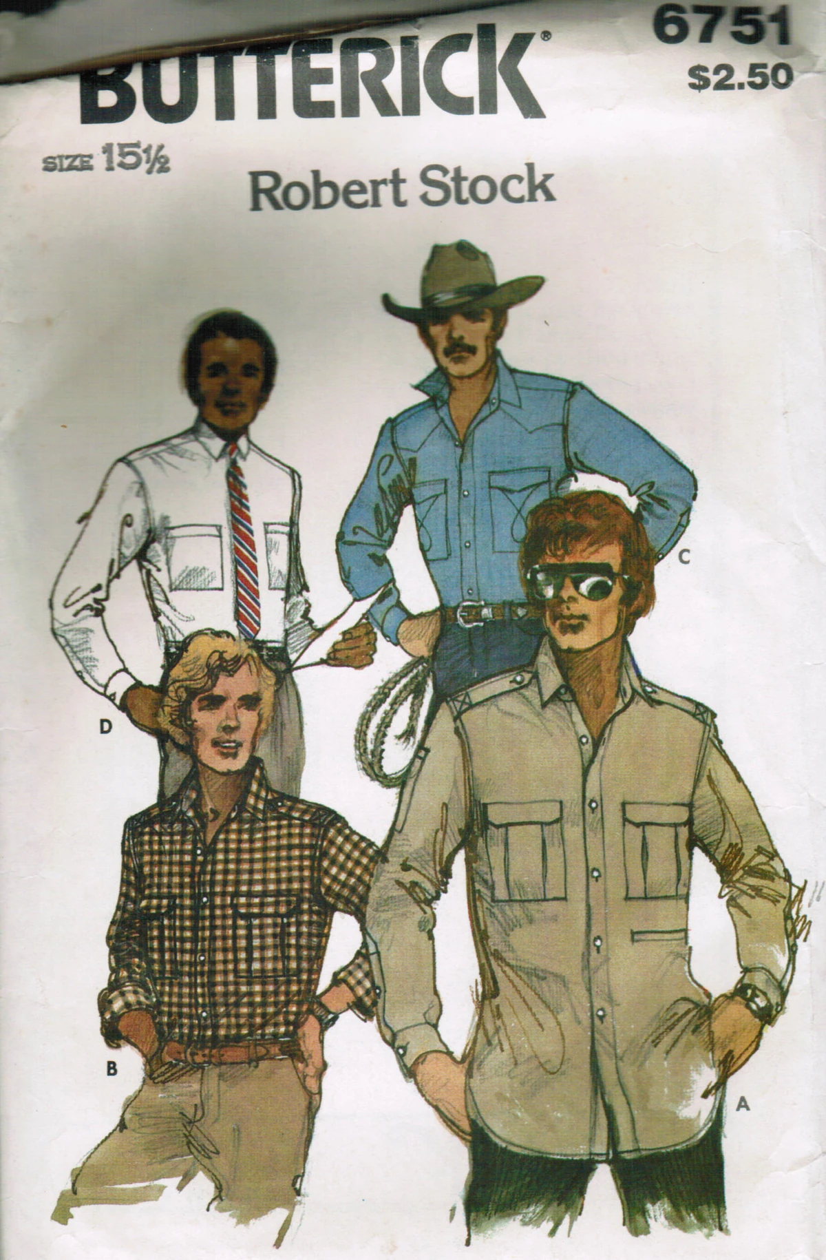 Butterick 6751 Sewing Pattern Mens Shirt 4 Variations Size 17 46 Ca 1980s On Ebid United States 199869137