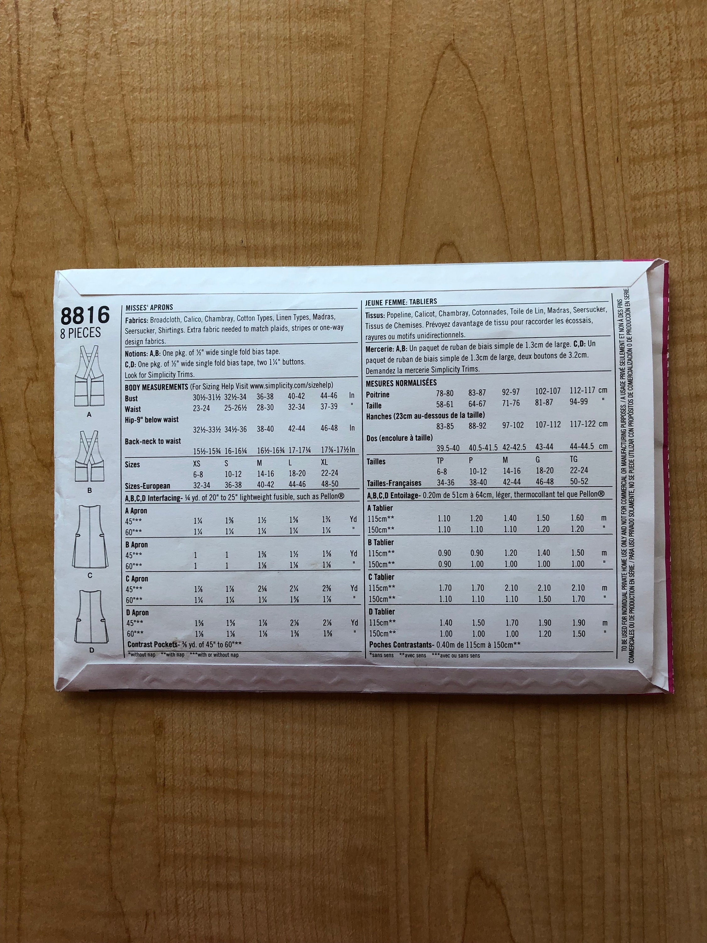 Amazon Com Simply Creative Group Simplicity 8816 Misses Aprons A Sizes Xs S M L Xl Multi Arts Crafts Sewing